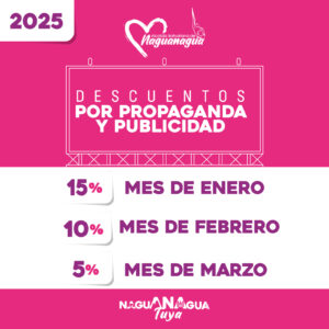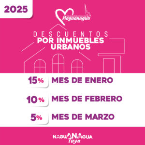 Con el propósito de continuar ofreciendo opciones a los contribuyentes para que se mantengan al día con sus tributos municipales, la gestión de la alcaldesa bolivariana de Naguanagua, Ana González, estableció que durante los meses de enero, febrero y marzo habrá un descuento del 15 %, 10 % y 5 % respectivamente, en los impuestos sobre Inmuebles Urbanos, Publicidad y Vehículos.