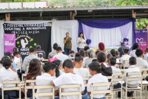 Migdalis Rodríguez, docente de la Escuela Básica Nacional Santa Ana, felicitó a la alcaldesa Ana González por incentivar a los niños y adolescentes a continuar desarrollando sus habilidades con la escritura y lectura, y a dejar un poco los juegos tecnológicos.