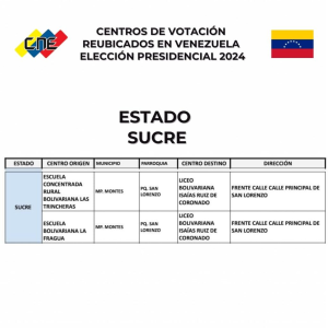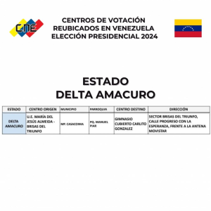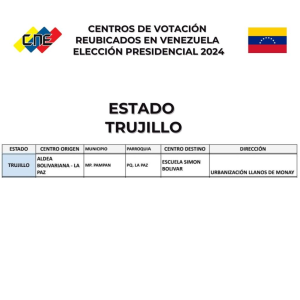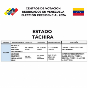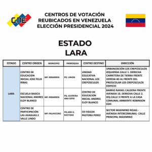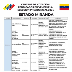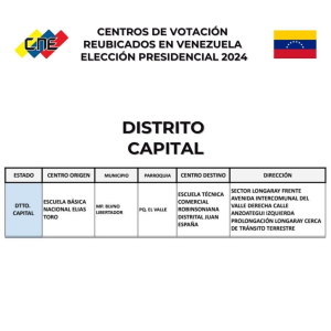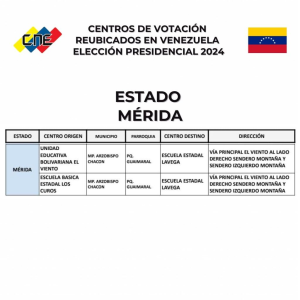 A través de su cuenta oficial en la red social X, la rectora principal del Consejo Nacional Electoral (CNE) Aime Nogal Méndez anunció este viernes 26 de julio cuáles son los centros de votación reubicados por estados.