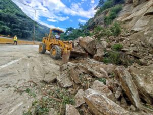 Wuilder Palermo, presidente de Invialca, informó que a primera hora de la mañana de este jueves fue desplegado un dispositivo integral con maquinaria pesada, entre ellas un rotomartillo, payloader y retroexcavadora, para la eliminación  de las rocas, escombros y sedimentos presentes en la vía, labores que se llevarán a cabo durante las próximas 48 horas.
