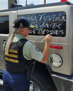 La Policía Municipal de Valencia en conjunto con el Instituto Autónomo Municipal de Tránsito y Transporte Terrestre (IAMTT), realizó abordaje de educación vial en la avenida Cedeño del municipio, para concientizar a la colectividad sobre el cumplimiento de las normas tránsito vehicular en aras de prevenir siniestros viales.