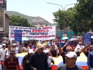 Empleados activos, trabajadores, jubilados, pensionados y gremialistas marcharon desde el norte y otros desde el sur hacia la avenida Cedeño, sin embargo, al llegar al punto de encuentro no todos se mezclaron entre sí y se notó públicamente el desencuentro entre dirigentes gremiales, a tal punto que había dos tarimas improvisadas en dos camiones por separado, con discursos en paralelo.