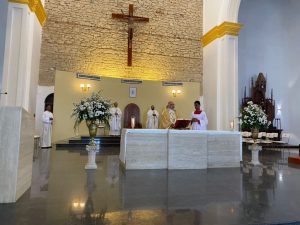 La misa estuvo presidida por monseñor Saúl Figueroa Albornoz, Obispo de Puerto Cabello y Administrador Apostólico de la Arquidiócesis de Valencia, y concelebrada por los presbíteros Hugo Jiménez, párroco de Nuestra Señora de la Caridad: William Campos, párroco de Nuestra Señora de Coromoto y José Alexander Chacón, párroco de Nuestra Señora del Socorro de Patanemo y Santísimo Cristo de Borburata.