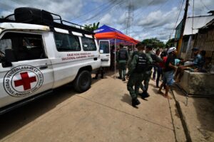 Al llegar a la entrada de esta comunidad, en unas de las calles paralelas al Caño La Yuca, se puede percibir al personal de la Cruz Roja Valencia repartiendo agua potable, debajo de un toldo del Sistema Integrado, acompañados de un grupo de efectivos militares, pertenecientes al Comando de la Zona 41 de La Isabelica, provenientes del Destacamento 412 GNB de Puerto Cabello, quienes hacían labores de seguridad y control en el lugar.
